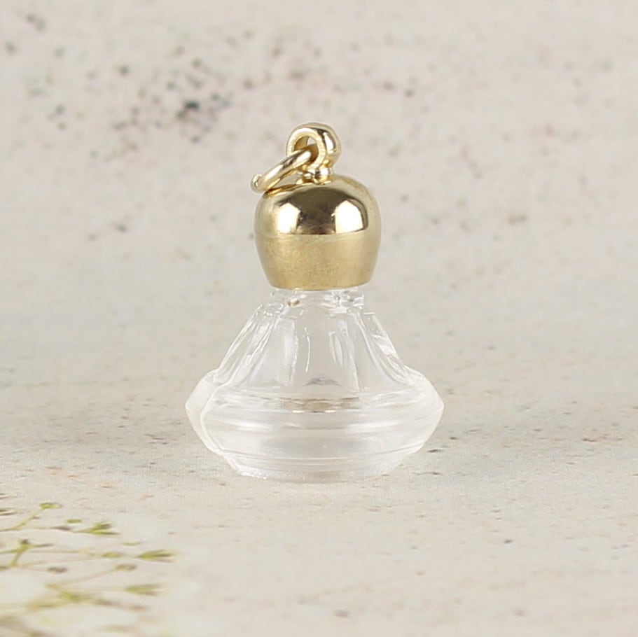 ミニ香水瓶 円盤透明 穴なし丸型キャップゴールド付き 5個セット