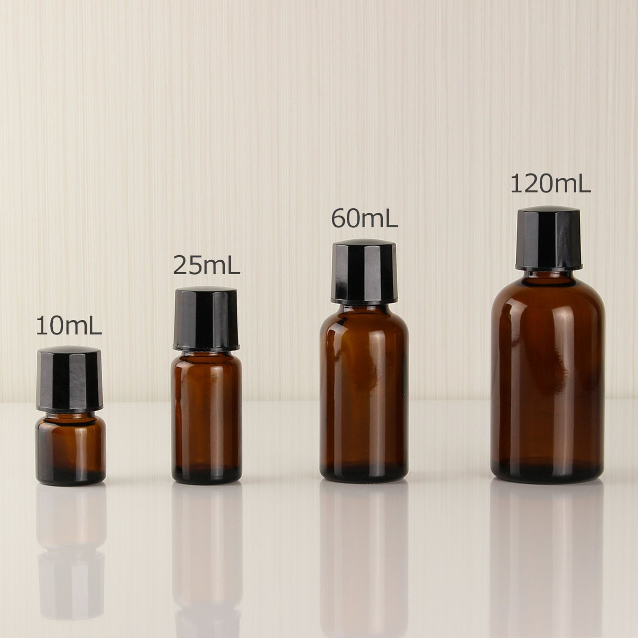 エッセンシャルオイルや香料、薬品の品質を守るために欠かせない高い遮光性を備えた茶色ガラスを採用。